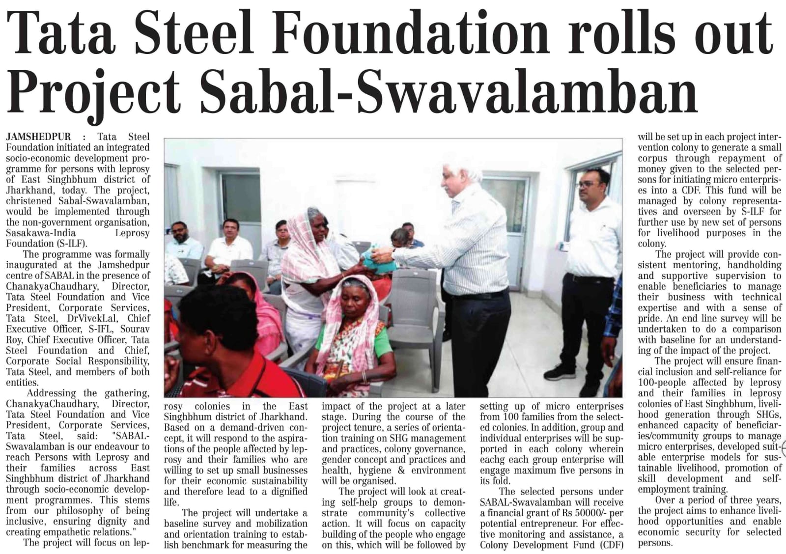 Tata Steel Foundation rolls out Project Sabal Swavlamban